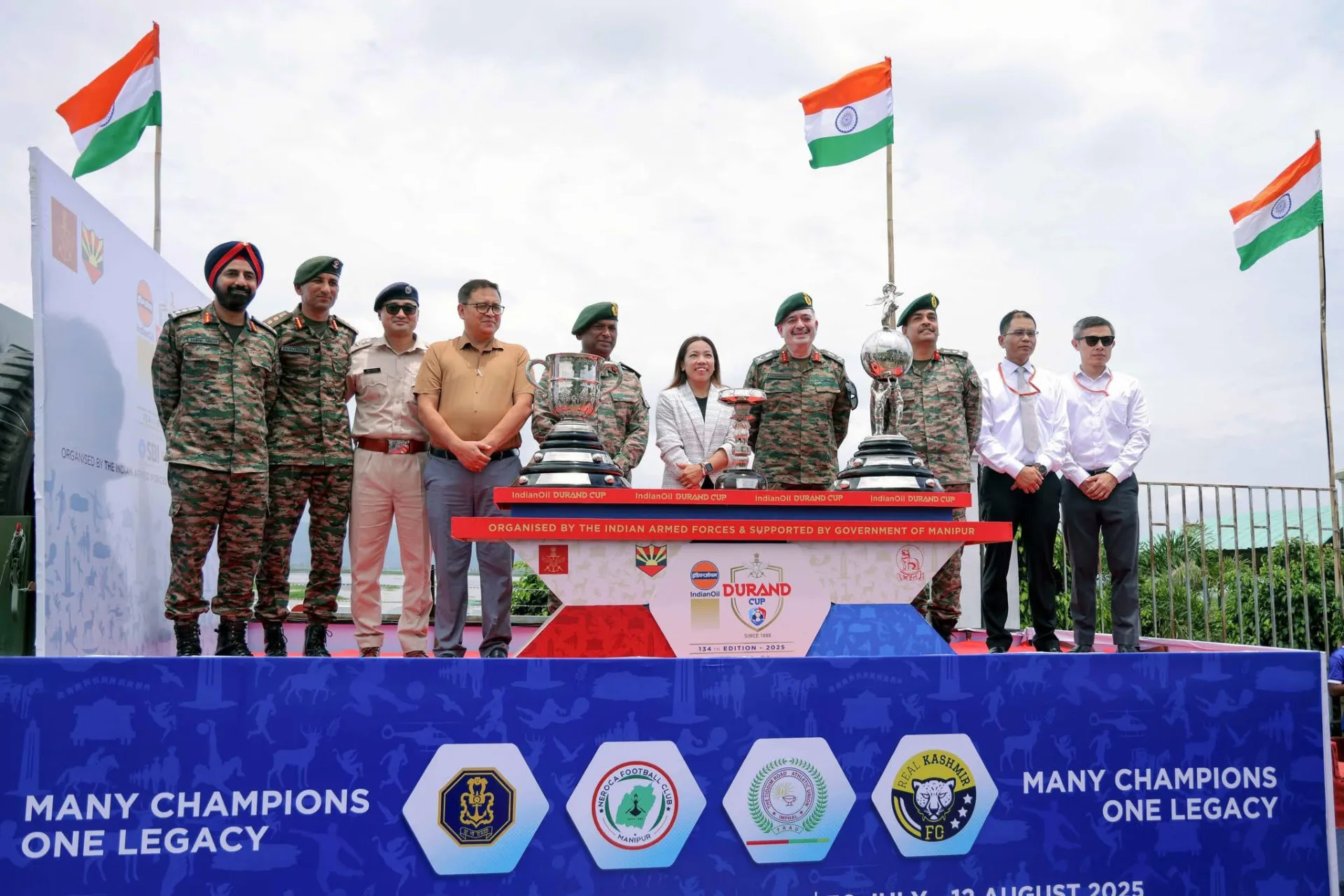 Ahead of the flag-off, a special photo session with the Durand Cup trophy and dignitaries was held, followed by a felicitation programme honouring Olympic medalist Mirabai Chanu.