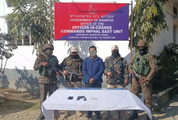 Security Forces arrested an active cadre of the banned Peoples’ Liberation Army on Saturday from his residence at Kairembikhok Maiyai Leikai in Thoubal district.