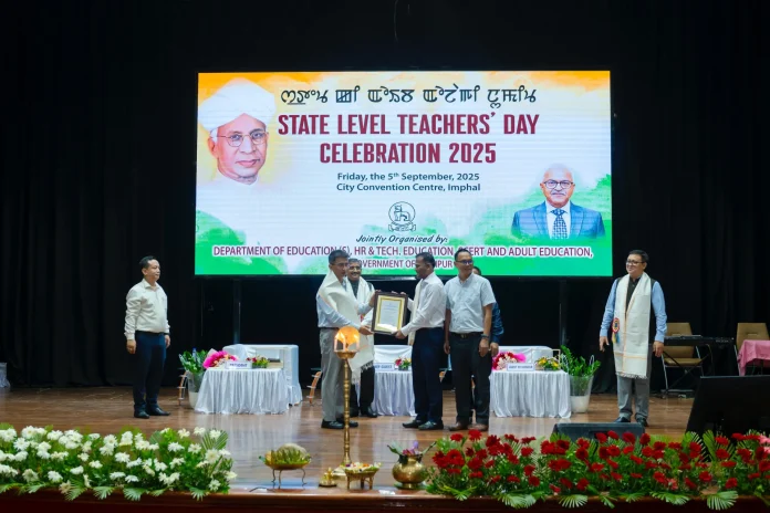 The award was presented by Dr. Puneet Kumar Goel, IAS, Chief Secretary of the Government of Manipur, who graced the occasion as Chief Guest. The ceremony was jointly organized by the Department of Education (Schools), Higher and Technical Education, SCERT, and Adult Education, Government of Manipur.