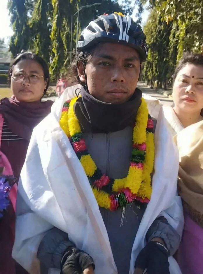 IMPHAL, Dec 19: Imphal witnessed an emotional outpouring on Friday as social activist and transgender rights advocate Malem Thongam returned to the state capital, concluding her 77-day bicycle peace mission that began in New Delhi on October 2, 2025. The campaign, inspired by the ideals of Mahatma Gandhi, was aimed at promoting reconciliation and harmony in Manipur amid prolonged ethnic unrest.