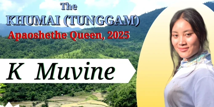 After much anticipation, the title of Khumai (Tunggam) Apaoshethe Queen 2025 was proudly awarded to Miss K. Muvine from Laii Vafiimai, currently pursuing her B.A. in English Department at Don Bosco College, Maram. Miss Muvine aspires to work in the global hospitality industry as a cruise liner professional, aiming to explore her full potential while serving and connecting with people from around the world.