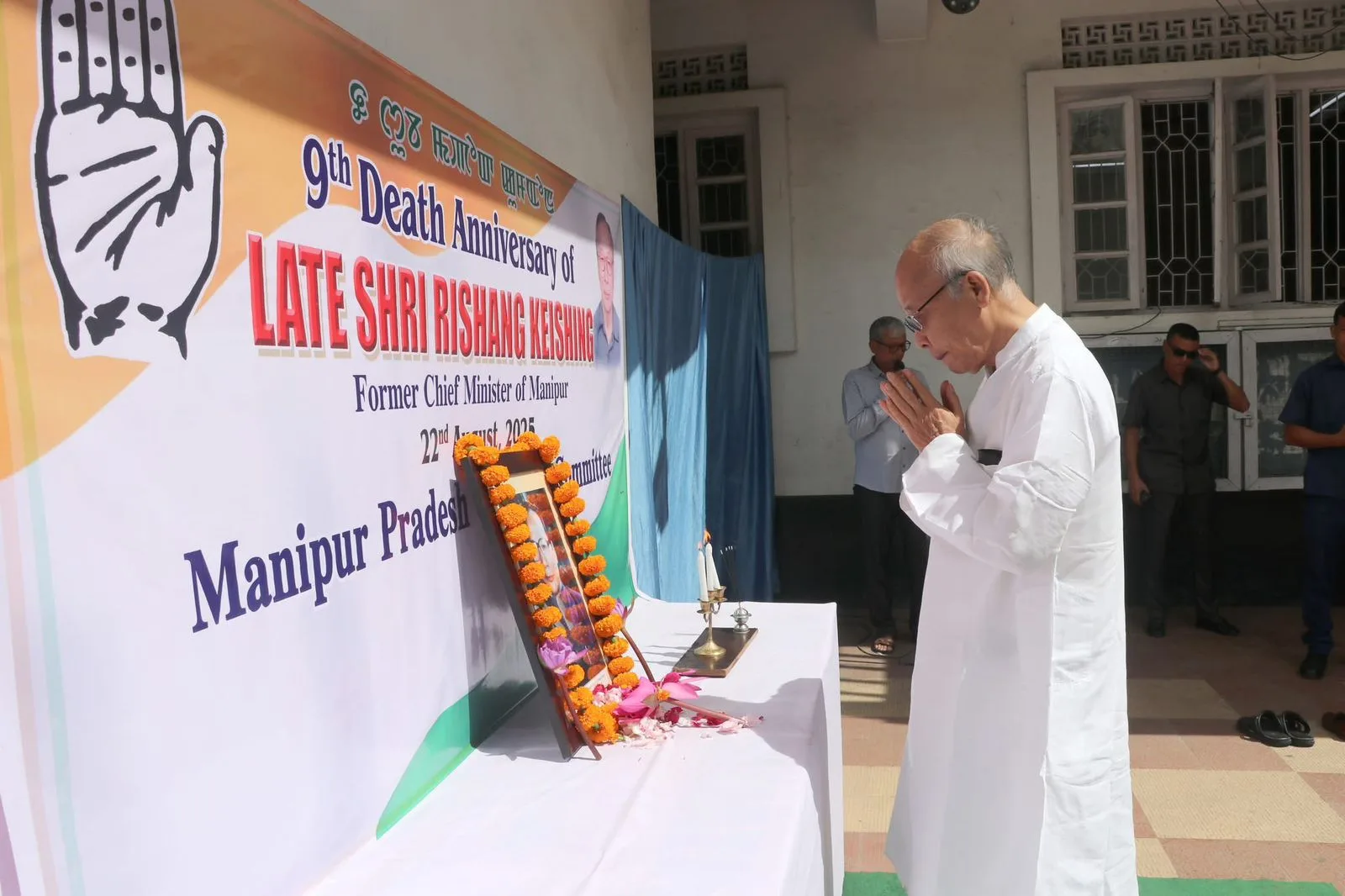MPCC president K. Meghachandra, CLP leader Okram Ibobi Singh, CWC member Gaikhangam, and other senior leaders were present at the solemn ceremony. Remembered as one of the tallest figures in Manipur’s political history, Rishang Keishing holds the distinction of being the state’s longest-serving Chief Minister and parliamentarian. He was also the first MP from Manipur elected to the Lok Sabha and served two terms in the Rajya Sabha.
