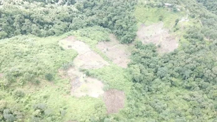 The drone-assisted survey was carried out at Upper and Lower Khabung villages under Senapati Police Station. Officials found nearly 13 hectares of forest land cleared for poppy cultivation, with several patches already sown with the crop.