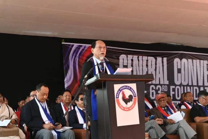 Kohima, October 21: In a historic political development, the Naga People’s Front (NPF) on Tuesday elected Nagaland Chief Minister Dr. Neiphiu Rio as its new President, following the formal ratification of the NDPP-NPF merger at the party’s General Convention held at the Indira Gandhi Stadium, Kohima. The event also marked the 63rd Foundation Day of the NPF.