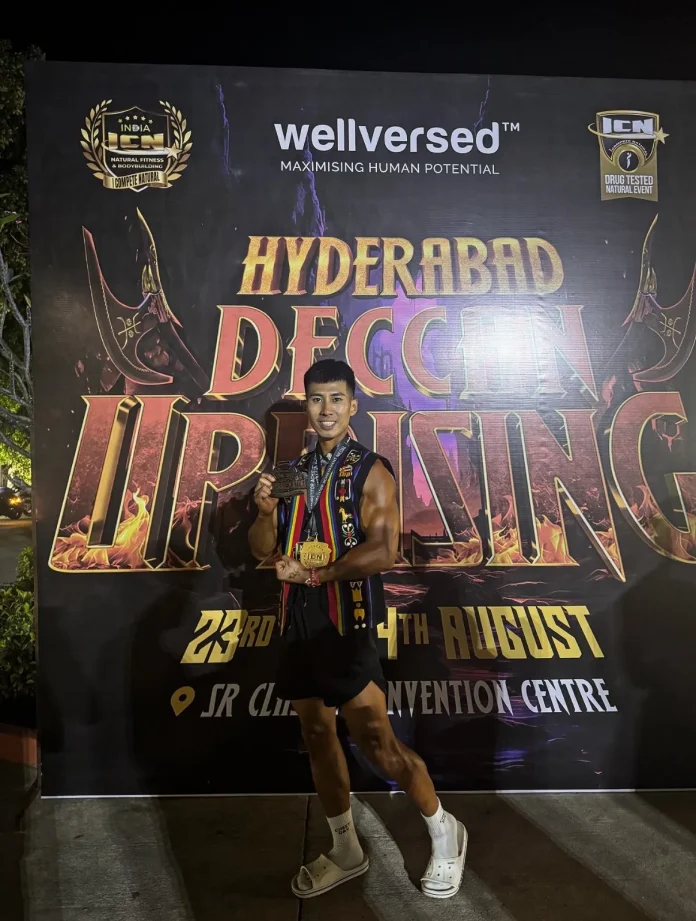 Senapati, August 25: In a proud and trailblazing moment for the Poumai community, P. Veiloutsii, a young athlete from Kathikho village, Senapati, has made history by becoming the first-ever Poumai bodybuilder to compete at the prestigious ICN (iCompete Natural) Deccan Uprising 2025 held on August 23 and 24 at the SR Classic Convention Centre, Shamshabad, Hyderabad.