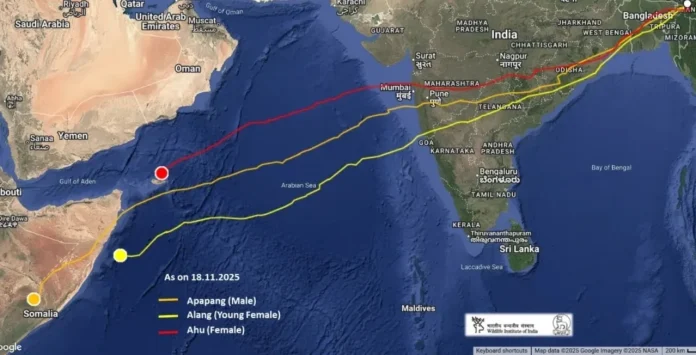 By November 18, Apapang had already completed the daunting Arabian Sea crossing and reached Somalia, later advancing toward the Kenya border after travelling an additional 1,000 km over land — marking an astonishing 6,100 km journey in just over six days. Ahu and Alang remain airborne over the Arabian Sea and are expected to reach Somalia shortly.