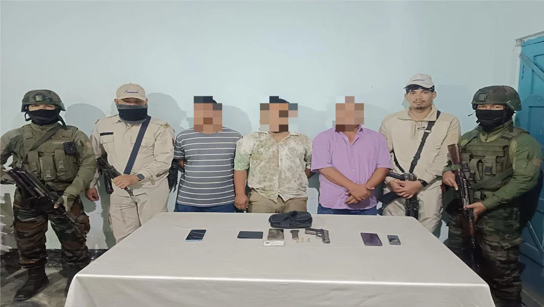 From their possession, security forces seized a .32 pistol loaded with three rounds, four mobile phones, and an Aadhaar card. The trio was reportedly involved in extortion activities linked to NRFM.