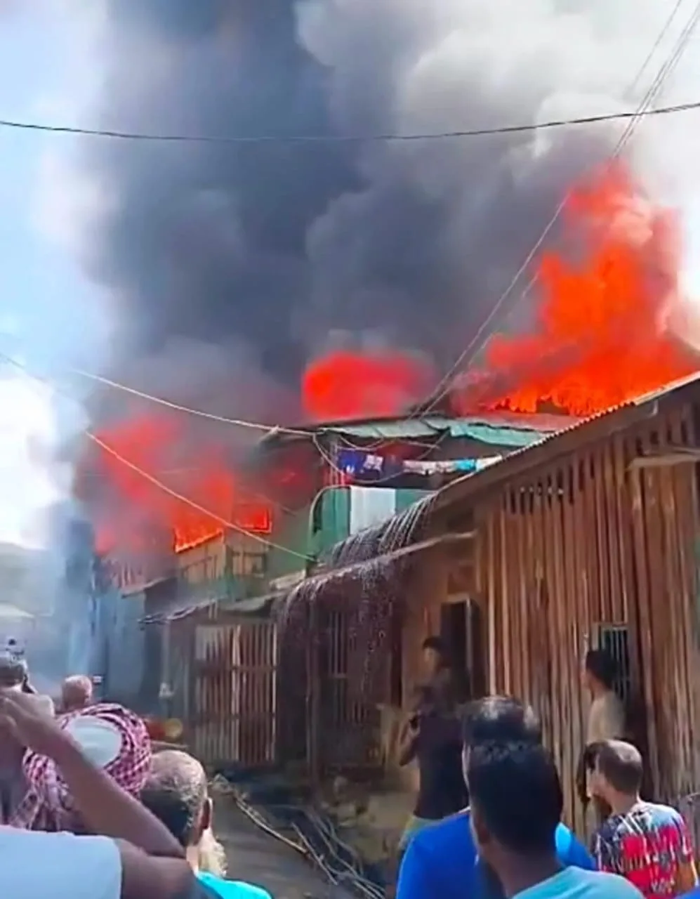 Firefighters from the Moreh Fire Sub-Station rushed to the spot to douse off the fire and were later joined by the Tamu Fire Service team from Myanmar to contain the flames.