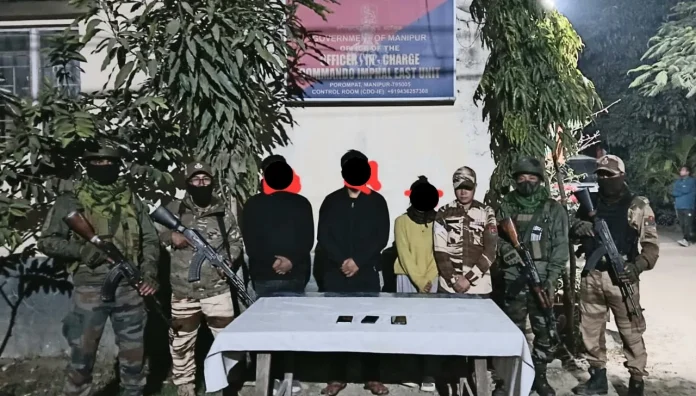 Police, in a statement, said “in a follow up investigation of a threat video posted on Facebook by a user named ‘Metei Lanmi Naotyboy’ on 21.11.2025 regarding bombing the Sangai Festival 2025, Manipur Police along with Assam Rifles conducted an operation and arrested three active cadres of KCP (MFL) who were involved in the incident.”