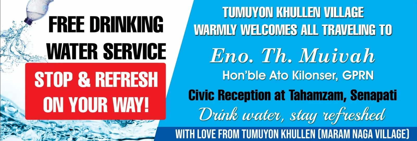 “We kindly invite all travelers to stop by at Tumuyon Khullen Village and refresh yourselves with clean drinking water prepared for everyone journeying to the event. Drink water, stay refreshed,” the message concluded.