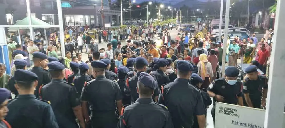 The family refused, alleging the move was an attempt to “cover up” the incident. Soon after, relatives and supporters staged a protest inside the hospital premises, refusing to accept the body. Tension escalated when private security personnel attempted to intervene, but the situation was brought under control after Manipur Police rushed to the spot.