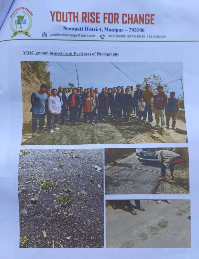 YR4C noted that in a hill district like Senapati, where road projects are not taken up annually, durability is vital to ensure connectivity for villagers. It urged the district administration to carry out a technical inspection, fix responsibility for deviations, withhold bill payments pending verification, and direct corrective measures at the earliest.